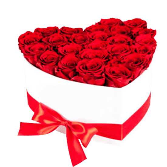 Delicada caja corazón en variedad de colores con 36 rosas importadas más cinta decorativa.