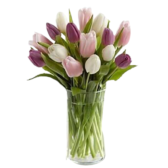 Hermoso florero de vidrio con 30 Tulipanes (Disponible solo en color amarilllo).